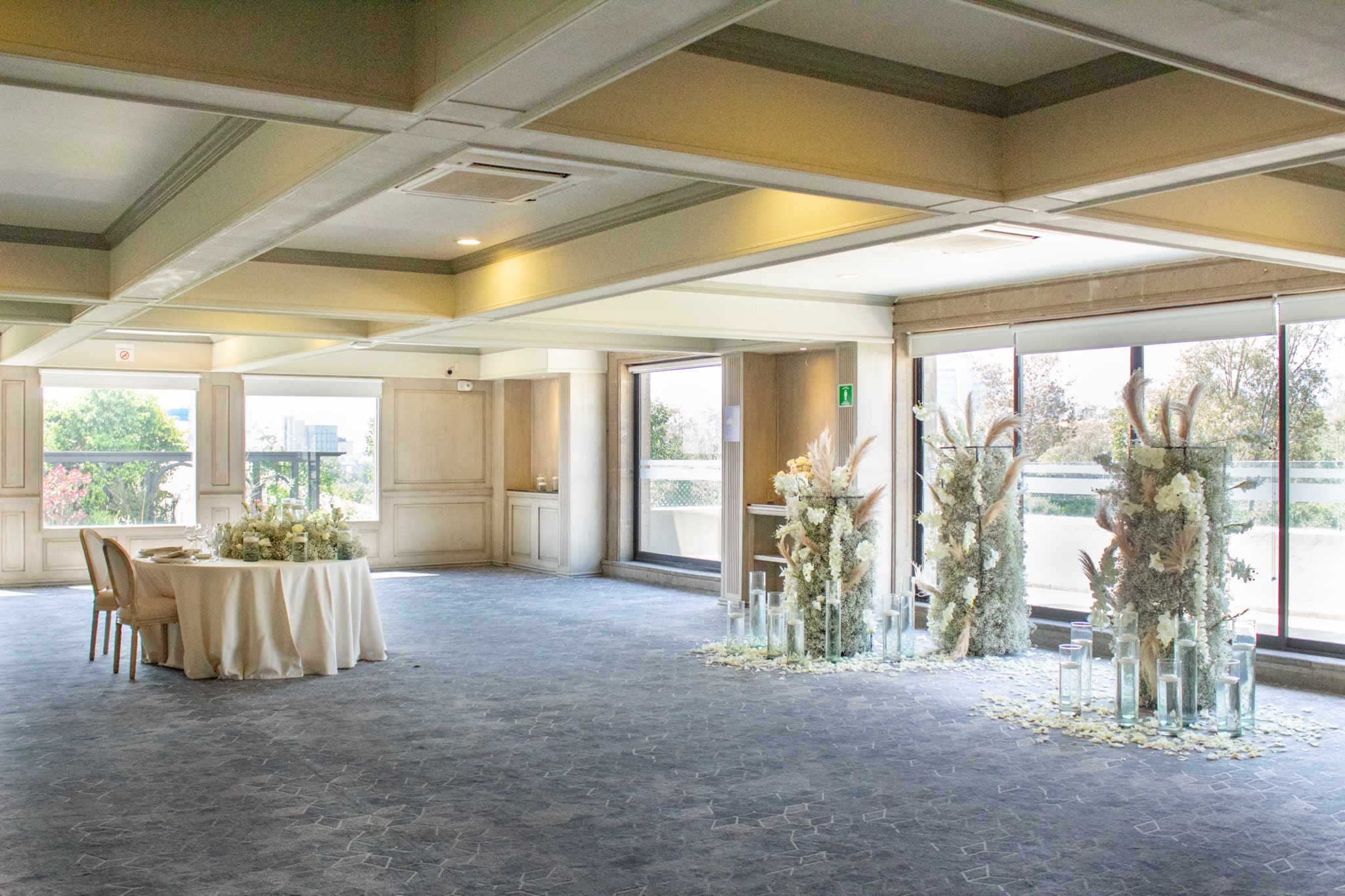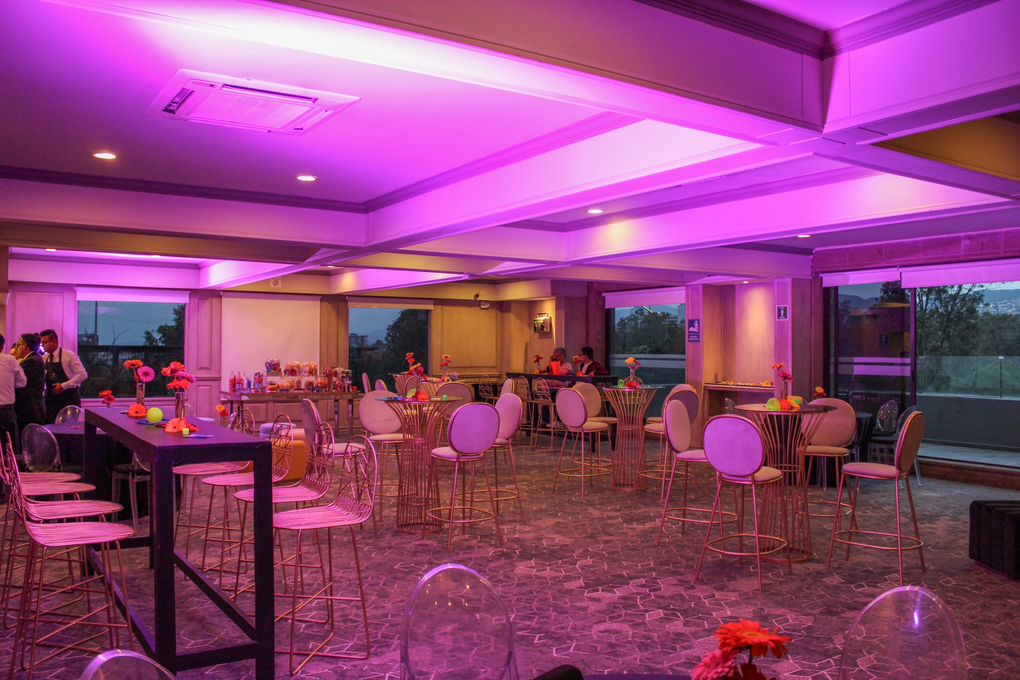El espacio se encuentra en el segundo piso del edificio de Ambrosía Periférico. Es un espacio rectangular con ventanales y una terraza para fumadores, lo que permite disfrutar de la vista del jardín y del Ajusco. Este salón de eventos y banquetes empresariales tiene un vestíbulo para recibir a tus invitados.